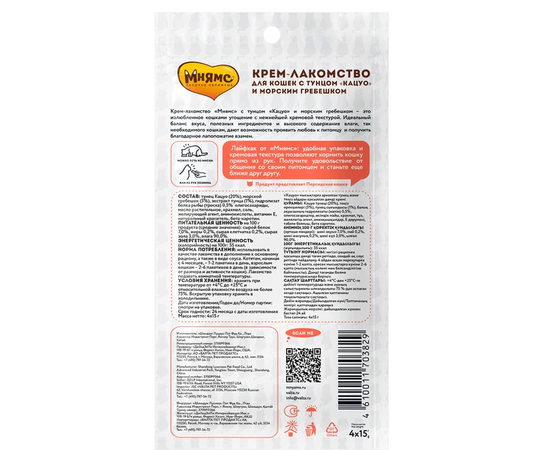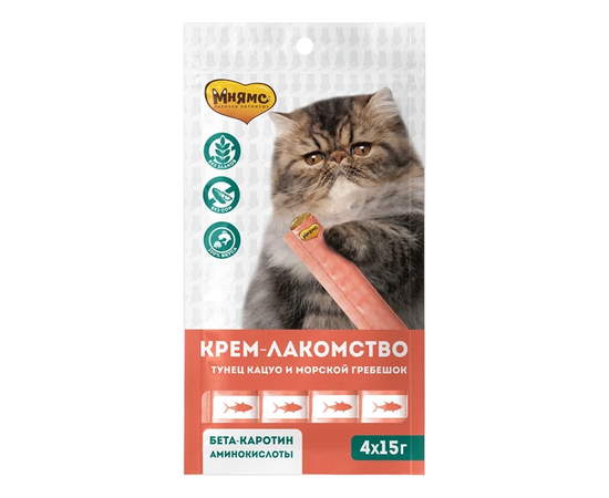Мнямс Крем-лакомство для кошек с тунцом Кацуо и морским гребешком 15г*4 шт