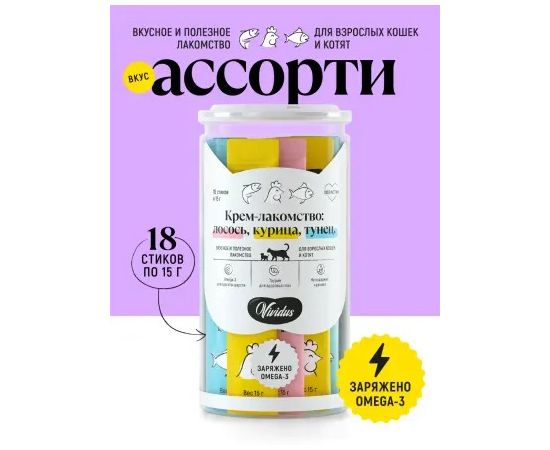 Крем-лакомство Вивидус для котят и кошек, ассорти стики,1 ШТ