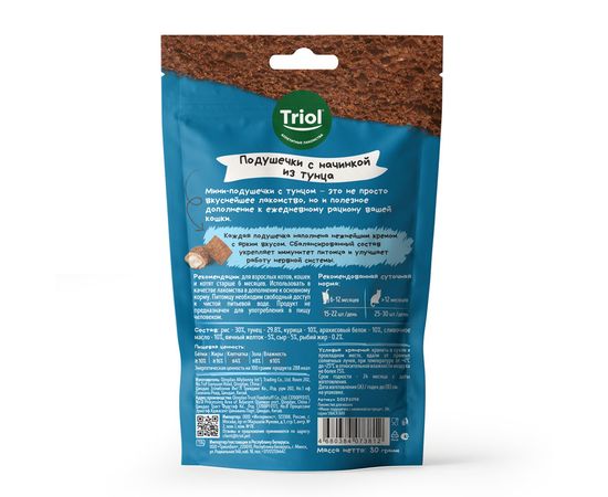 Лакомство для кошек "Мини-подушечки с начинкой из тунца", Triol 30г