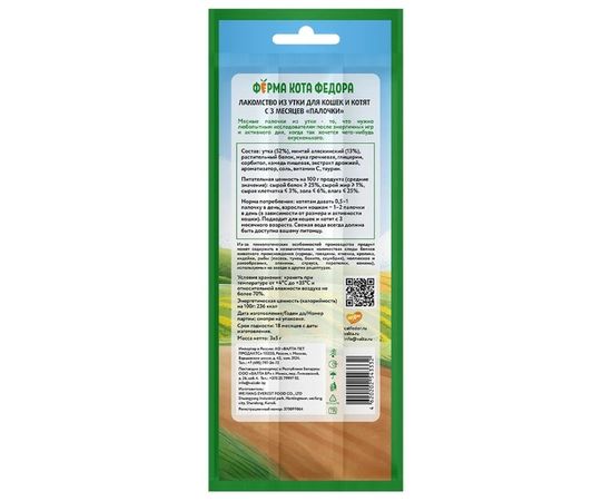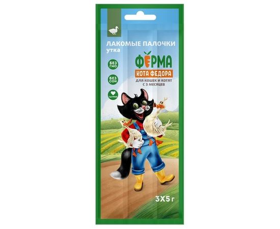 Лакомство Ферма кота Федора лакомые палочки для кошек и котят из утки 3 х 5 г