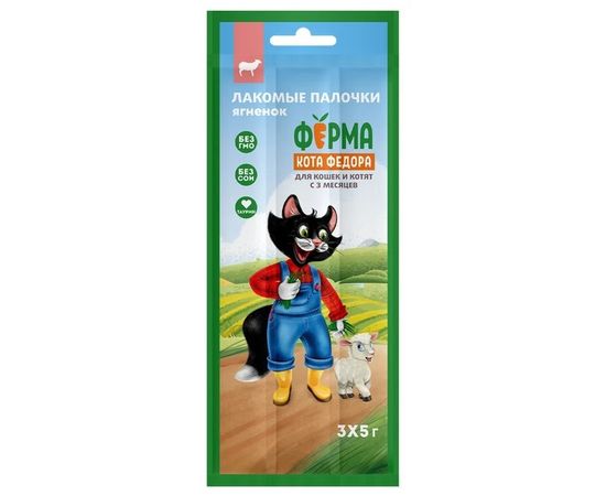 Лакомство Ферма кота Федора лакомые палочки для кошек и котят из ягненка 3 х 5 г