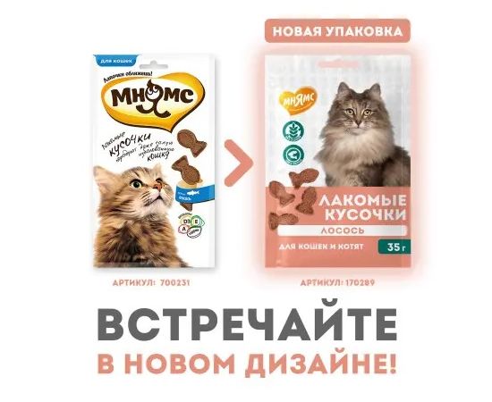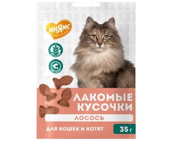 Мнямс лакомство для кошек и котят кусочки из лосося 35 г.