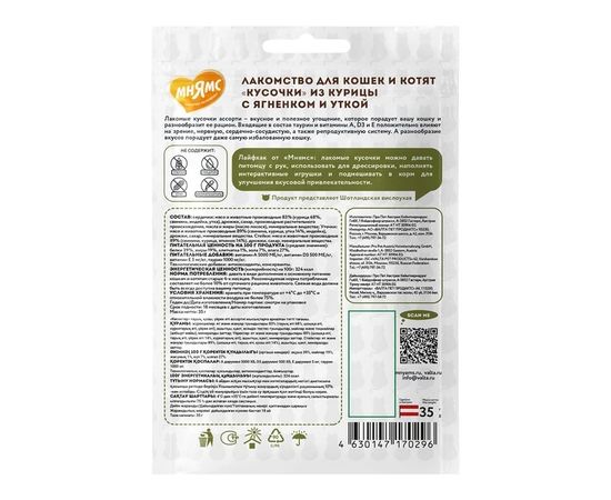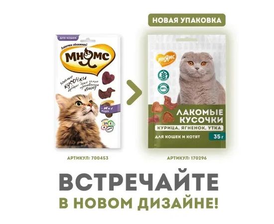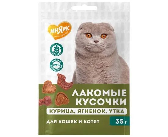 Мнямс лакомые кусочки для кошек и котят ассорти курица, ягненок, утка 35 г