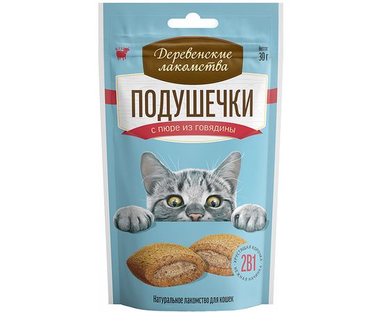 Деревенские лаком. Подушечки с пюре из говядины для кошек 30 г.