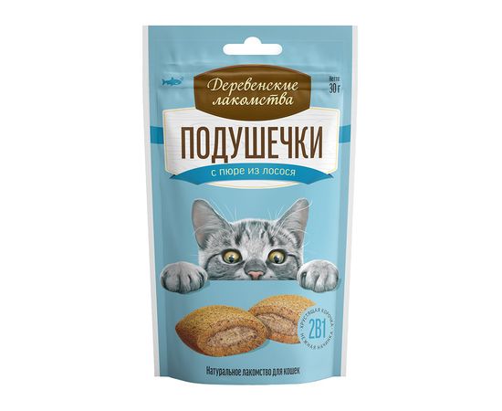 Деревенские лаком. Подушечки с пюре из лосося для кошек 30 г.,540950