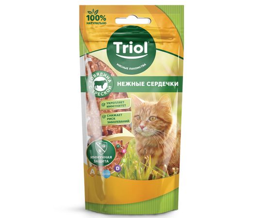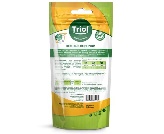 Лакомство для кошек «Нежные сердечки из говядины с треской», 40г, Triol