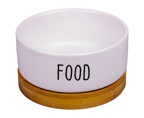 Миска Mr.Kranch Bamboo Food керамическая белая на бамбуковой подставке 340 мл