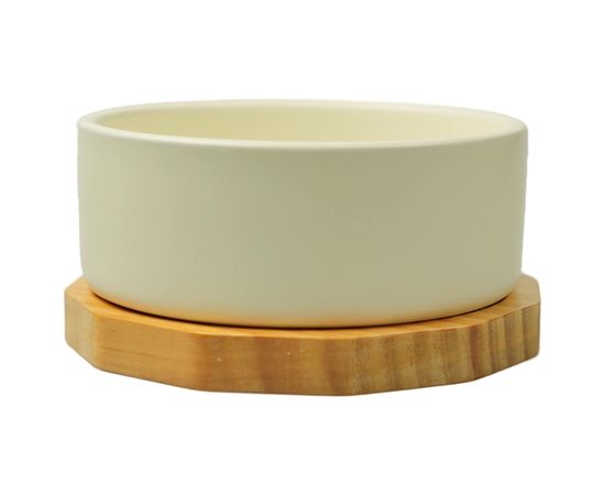Миска Mr.Kranch Bamboo керамическая белая на бамбуковой подставке 470 мл