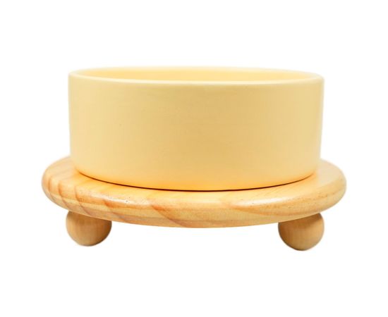 Миска Mr.Kranch Bamboo керамическая желтая на бамбуковой подставке 850 мл