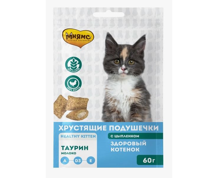 Мнямс Хрустящие подушечки для котят с цыпленком и яйцом "Здоровый котенок" 60 г.