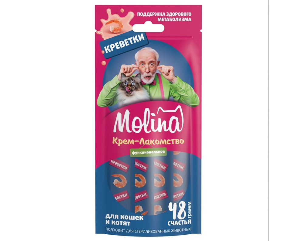 Molina Функц. крем-лакомство с креветками д/взр.кош, Поддержка здорового метаболизма, 48г, 74099