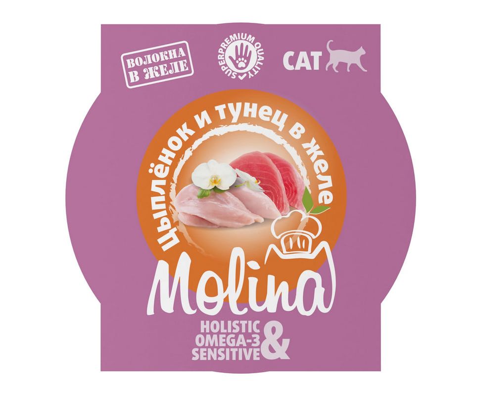 Molina Ламистер для взрослых кошек. Цыпленок и тунец в желе, 75 г, 1061175