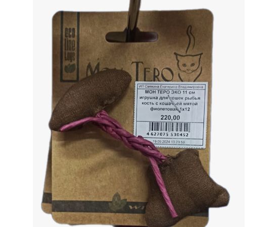 МОН ТЕРО ЭКО 11 см игрушка для кошек рыбья кость с кошачьей мятой фиолетовая