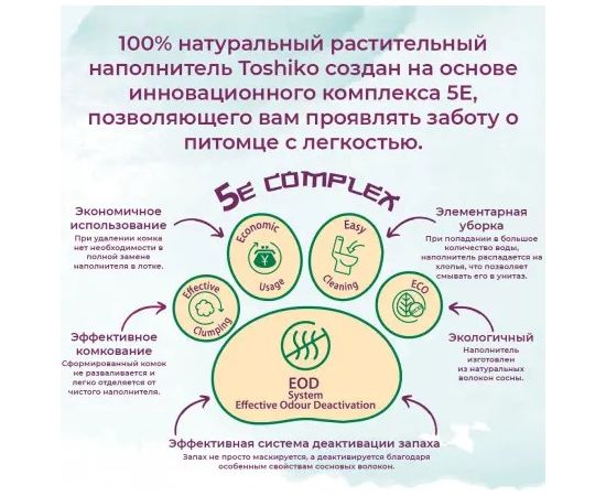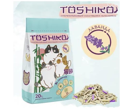 Комкующийся наполнитель Toshiko для кошачьего туалета, древесный, лаванда, 20л.