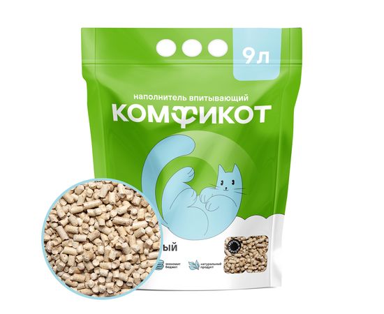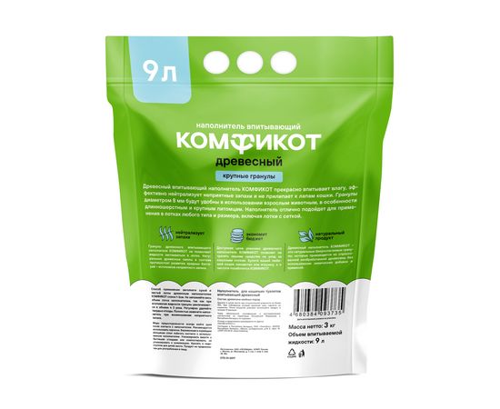 КОМФИКОТ Наполнитель древесный впитывающий, крупные гранулы, 9 л