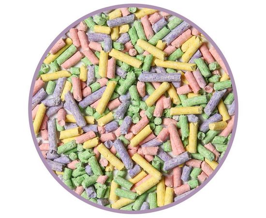 Благодаря волоконной структуре при попадании жидкости соевые гранулы образуют крепкий комок и надежно запирают запах внутри. Кроме того, комкующаяся новинка содержит в своем составе экстракт зелёного чая, который придаёт изделию приятный легкий аромат, а оригинальный оттенок наделяет продукт особой эстетикой.