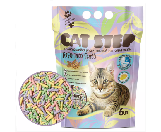 Наполнитель Cat Step растительный комкующийся Tofu Tutti Frutti 6 л, 20333013