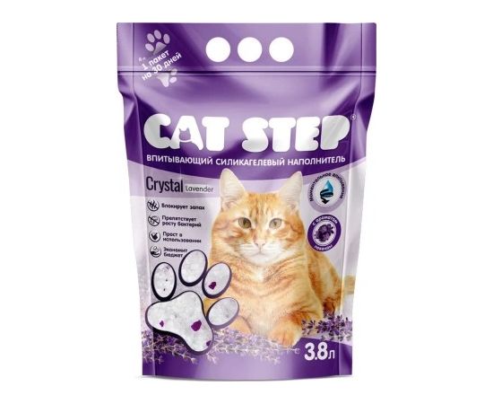 Cиликагелевый наполнитель для кошачьего туалета CAT STEP Arctic Lavender моментально впитывает влагу и уничтожает запахи.