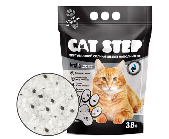 Cиликагелевый наполнитель для кошачьего туалета CAT STEP Arctic Black&White моментально впитывает влагу и уничтожает запахи. Пористая структура кристаллов обеспечивает их высокую способность к поглощению жидкостей и запахов. Наполнитель препятствует размножению и развитию бактерий и грибков за счет своего неорганического происхождения. Наполнитель не требует постоянного контроля и ежедневной уборки кошачьего лотка.