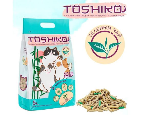 Комкующийся наполнитель Toshiko для кошачьего туалета, Сакура, зеленый чай, 5 л.