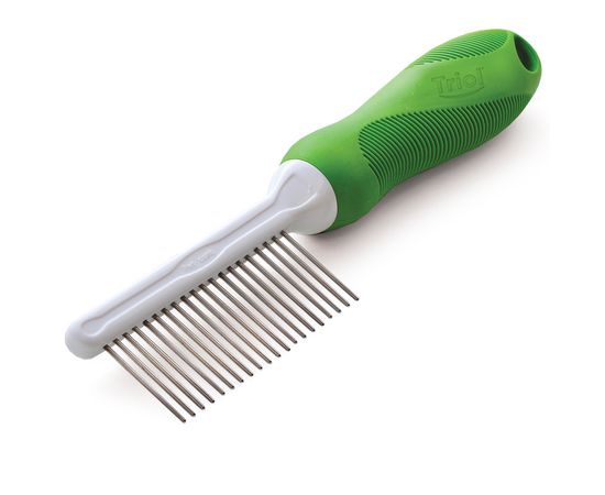 Такая расческа - это не только полезный, но и максимально удобный аксессуар для ухода за животными. Продуманная до мелочей, она входит в линейку премиального груминга и идеально подходит для удаления уже выпавших волос и уменьшения линьки. Прочные металлические зубцы длиной 28 мм с закругленными концами бережно воздействуют на кожу животного и создают дополнительный массажный эффект. А благодаря эргономичной прорезиненной ручке изделие удобно лежит в руке. Размер изделия: 204*46*26мм. Количество зубцов: 20. Изделие упаковано в блистер (ручка открыта).