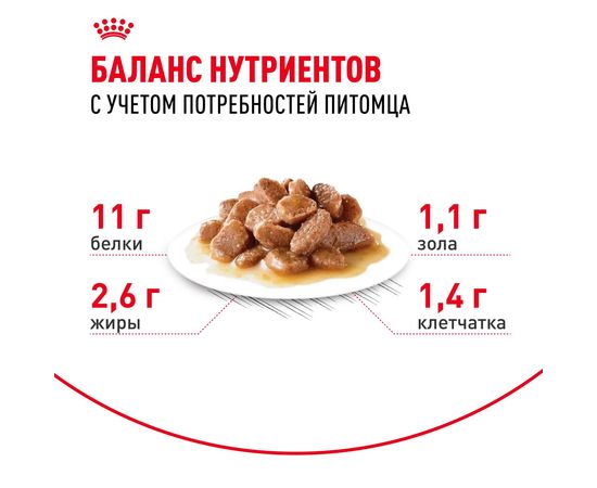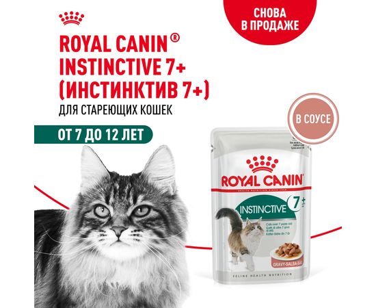 Корм консервированный полнорационный для кошек в возрасте старше 7 лет INSTINCTIVE 7+ (ИНСТИНКТИВ 7+) ROYAL CANIN®, мелкие кусочки в соусе, подходящий для кошек в возрасте старше 7 лет, специально разработан с учетом потребностей вашей кошки в питательных веществах.