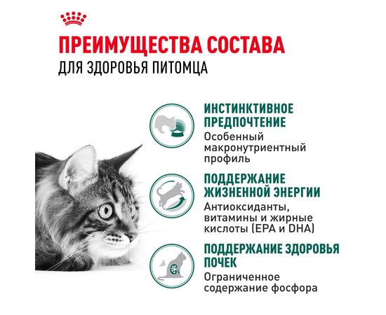 ROYAL CANIN® Instinctive 7+ (ИНСТИНКТИВ 7+) содержит жирные кислоты Омега-3 (EPA и DHA) и комплекс антиоксидантов, в том числе витамины С, Е для поддержания здоровья и жизненной энергии кошек.