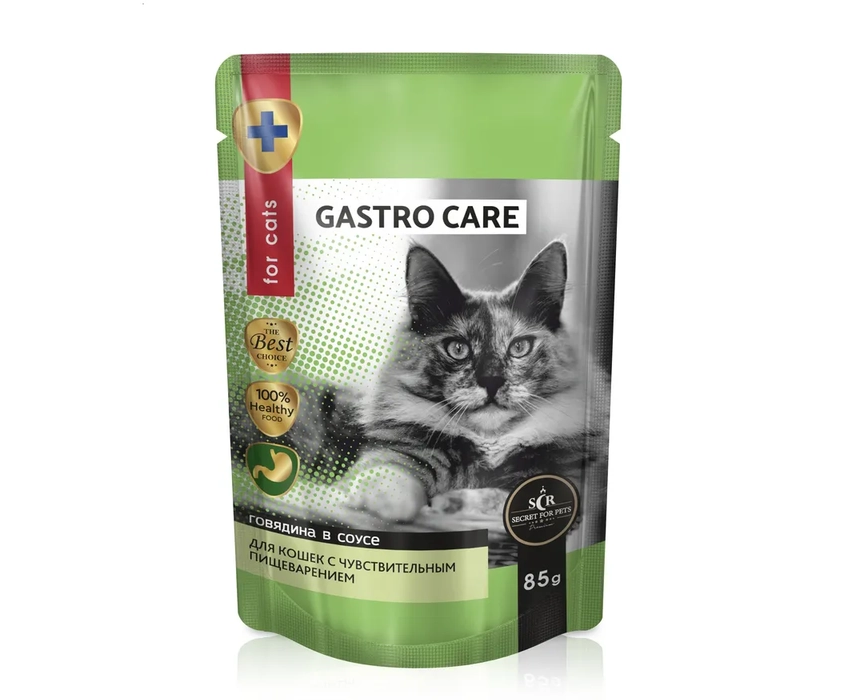 Секрет For Pets 85гр пауч для кошек Gastro Care кусочки с говядиной в соусе