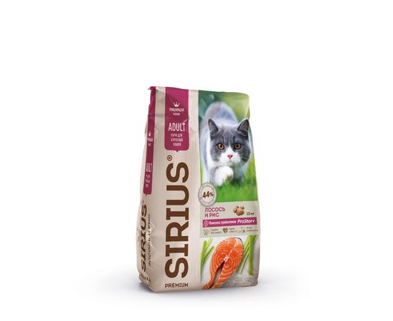 Сухой корм SIRIUS для взрослых кошек, лосось и рис, 10кг