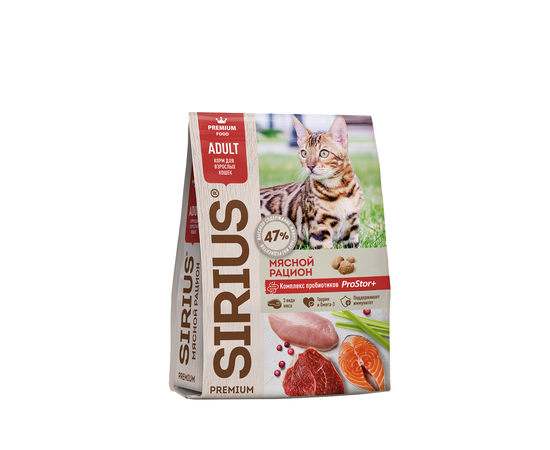 Сухой корм Sirius для взрослых кошек, мясной рацион 10 кг