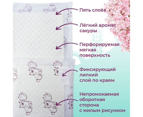 Toshiko пеленки с ароматом сакуры 30 шт 60х60 см,53716