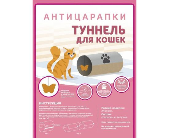 Туннель для кошек на кнопках Антицарапки 24х50см