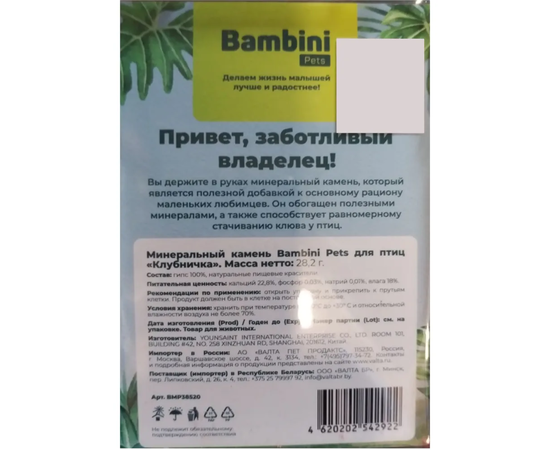 Bambini Pets Минеральный камень для птиц Клубничка 1шт