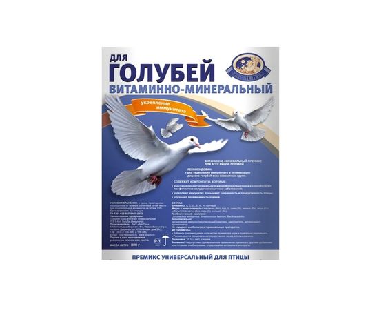 Продукт содержит все необходимые витамины и минералы для нормального роста и развития голубей.