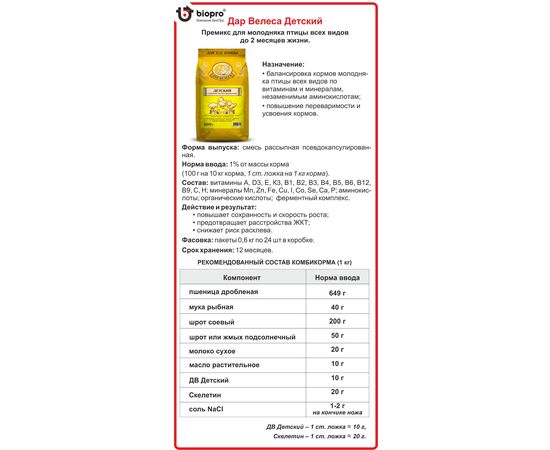 Прем. ВЕЛЕСА ДЕТСКИЙ для молодняка птицы 0,6 кг