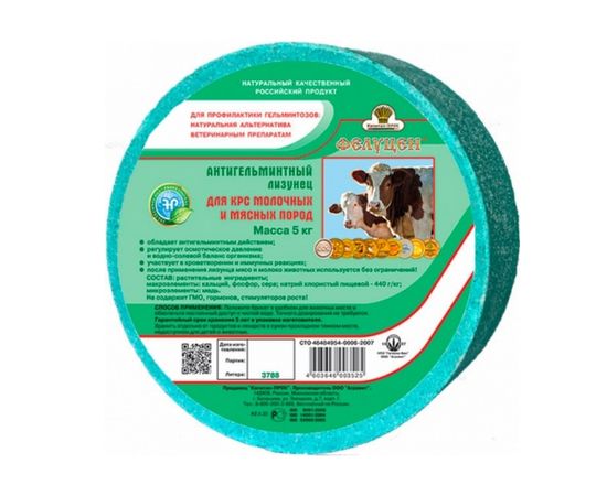 Специальная кормовая добавка. Способствует естественному оздоровлению поголовья КРС и значительному снижению зараженности пастбищ, является натуральной альтернативой химическим лекарственным препаратам: