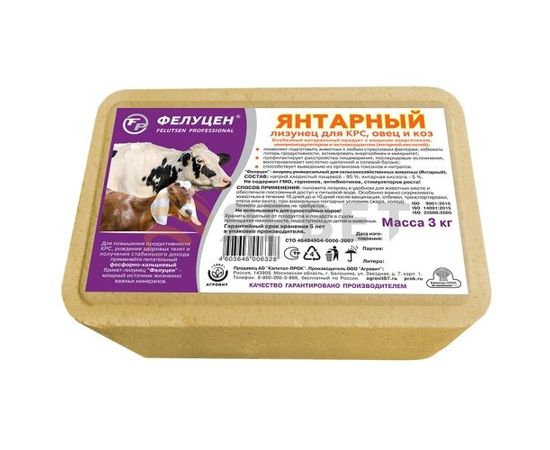 Фелуцен-ЛИЗУНЕЦ УНИВЕР для с/х животных (Янтарный) брикете 3 кг, 1003548