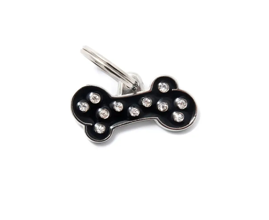 Адресник "My Family Chic со Стразами" Косточка черный большой
