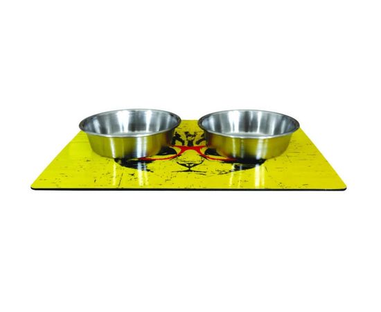 УЮТ магнит. коврик 30,5*22,8 см с мет. мисками 280 мл, рис. кошка в очках (1х1 шт. 10 шт/кор), АКМ06