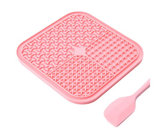Mr.Kranch Лизательный коврик розовый с лопаткой 20х20 см