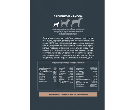 Корм AlphaPet Superpremium для собак мелких пород с чувствительным пищеварением, с ягненком и рисом, 7кг