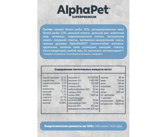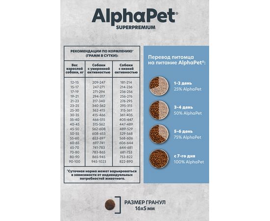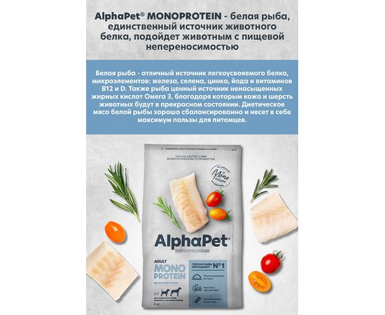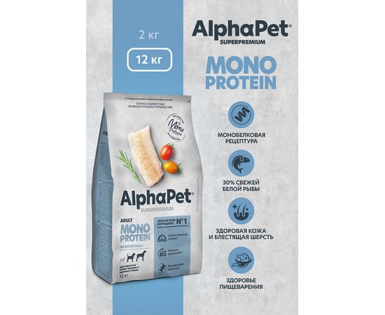 Корм AlphaPet Superpremium Monoprotein для взрослых собак средних и крупных пород, с белой рыбой, 12кг