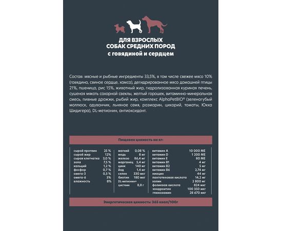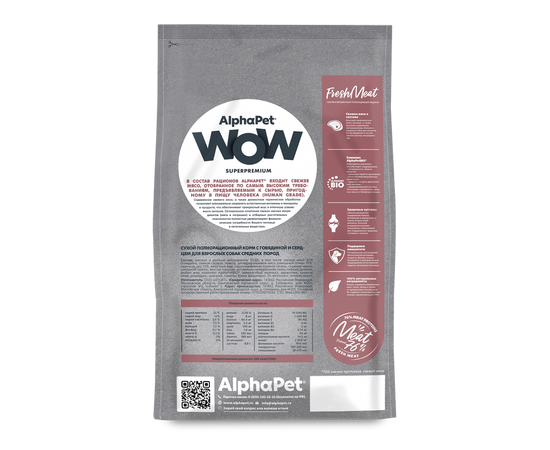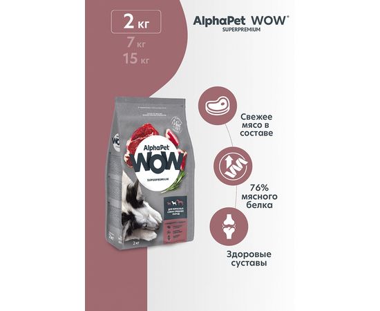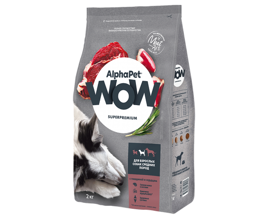 Корм AlphaPet WOW для собак средних пород, говядина и сердце, 2кг