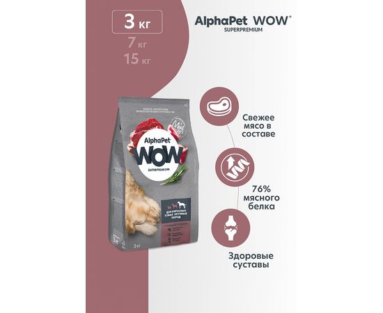 Корм AlphaPet WOW для взрослых собак крупных пород, говядина и сердце, 3кг