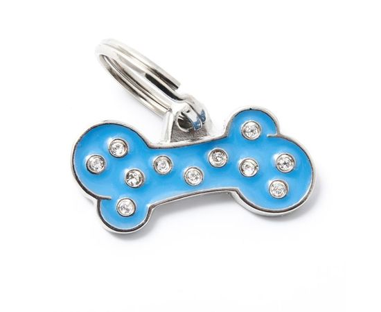 Адресник "My Family Chic со Стразами" Косточка голубой большой, 00-00000532