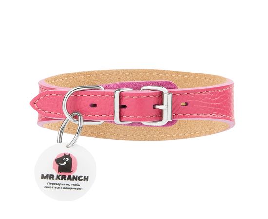 Ошейник-селедка Mr.Kranch для собак из натуральной кожи с QR-адресником, 29-35см, розовый, 173839