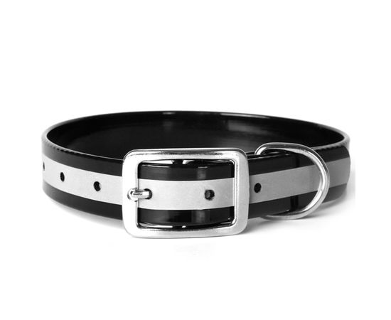 Ошейник из биотана со светоотражающей полосой 15мм*26-35 см, черный