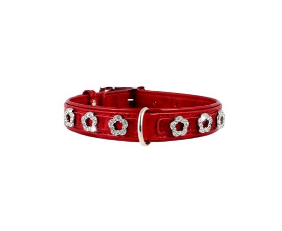 КОЛЛАР БРИЛЛИАНС Ошейник с украшениями "Цветочек" красный (ширина 25мм, длина 38-49см), 49023