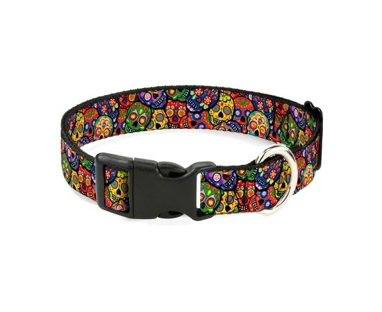 Ошейник Buskle-Down Цветные черепа мультицвет с пластиковой застежкой 38-66 см., 190882319946