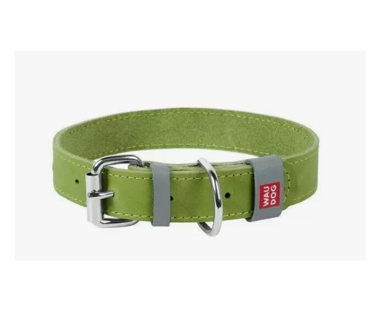 Ошейник для собак кожаный WAUDOG Classic, Ш 25 мм, Дл 38-49 см салатовый, 02185